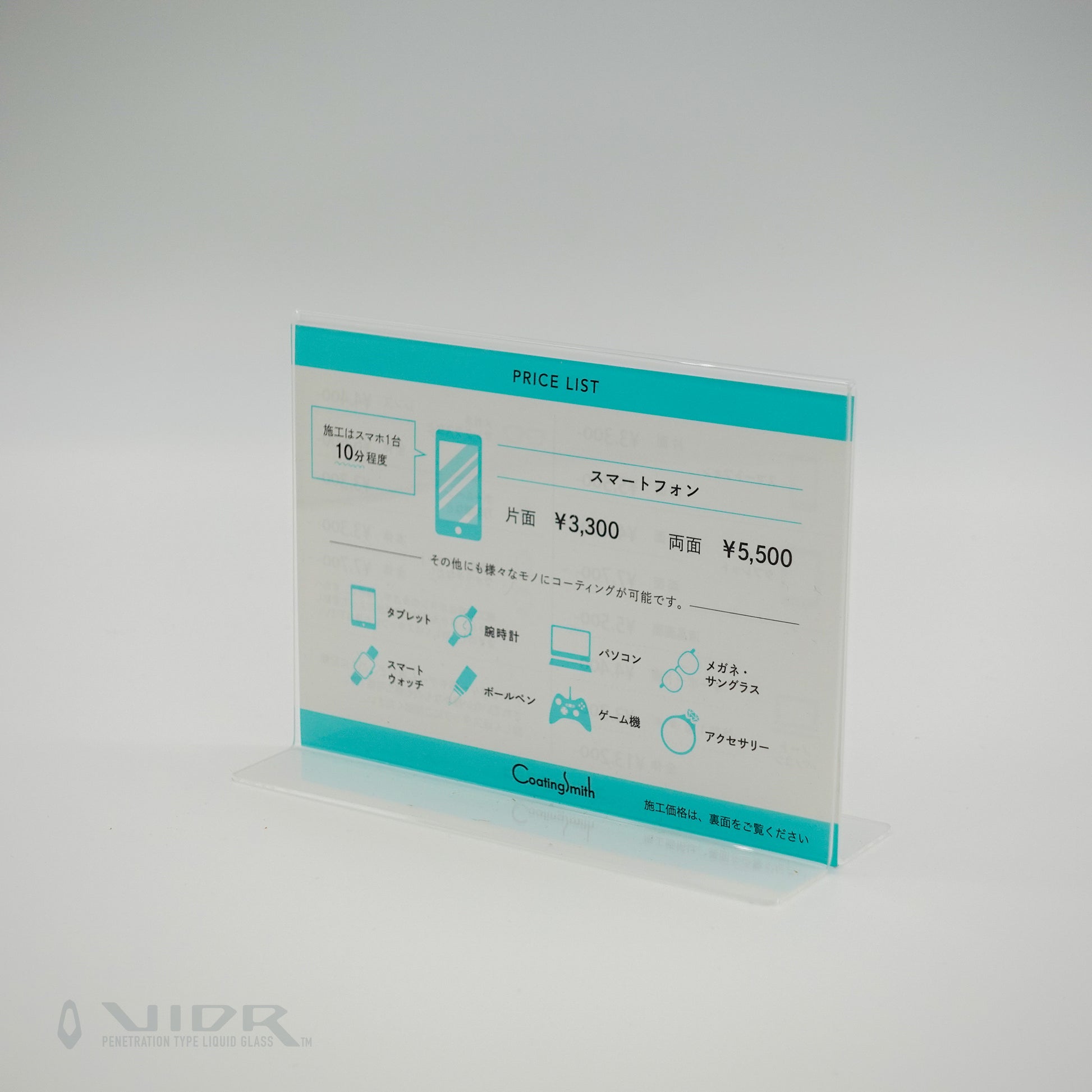 FC店舗にて使用している価格表と同じなので、価格設定にも困りません。